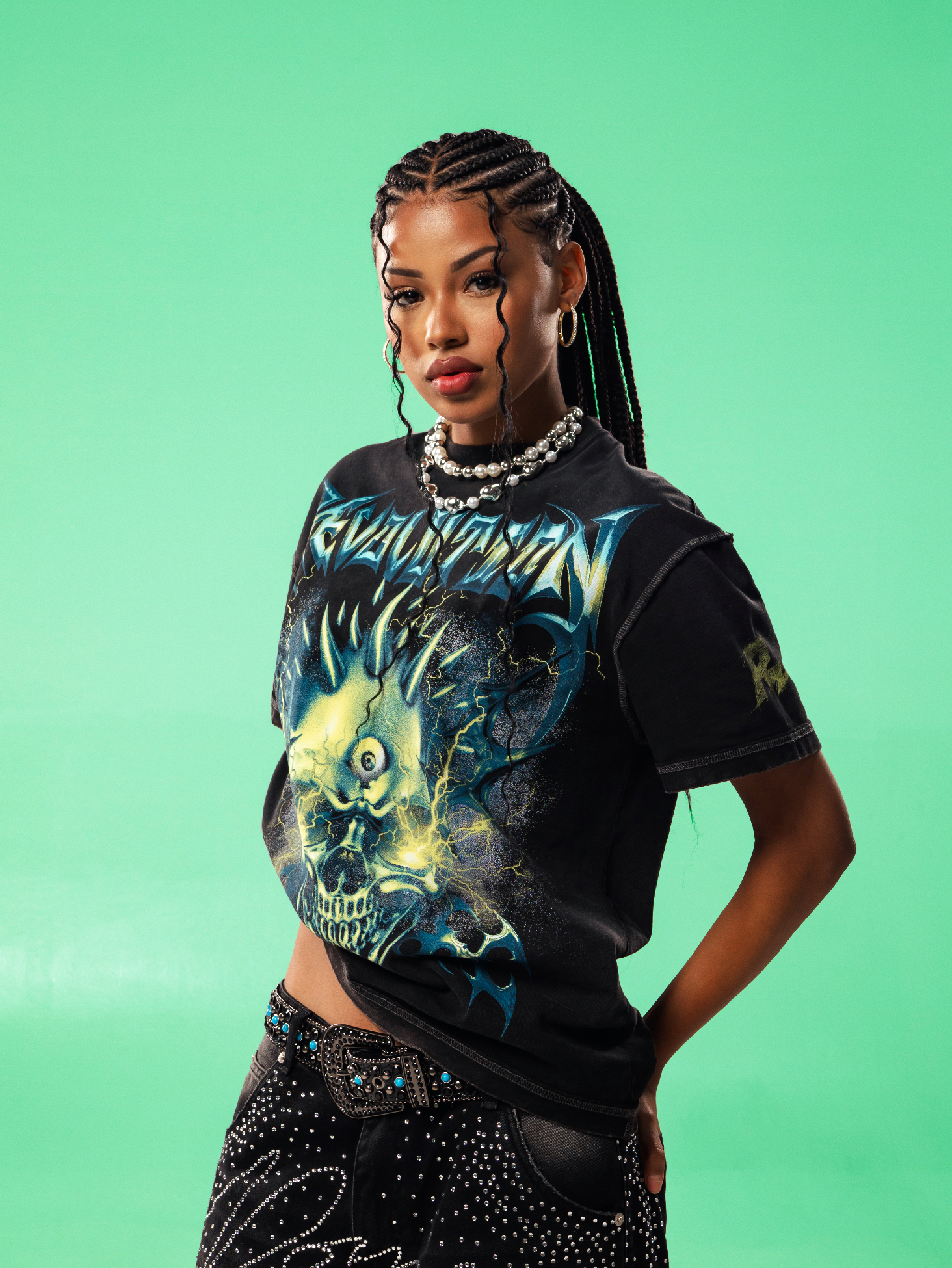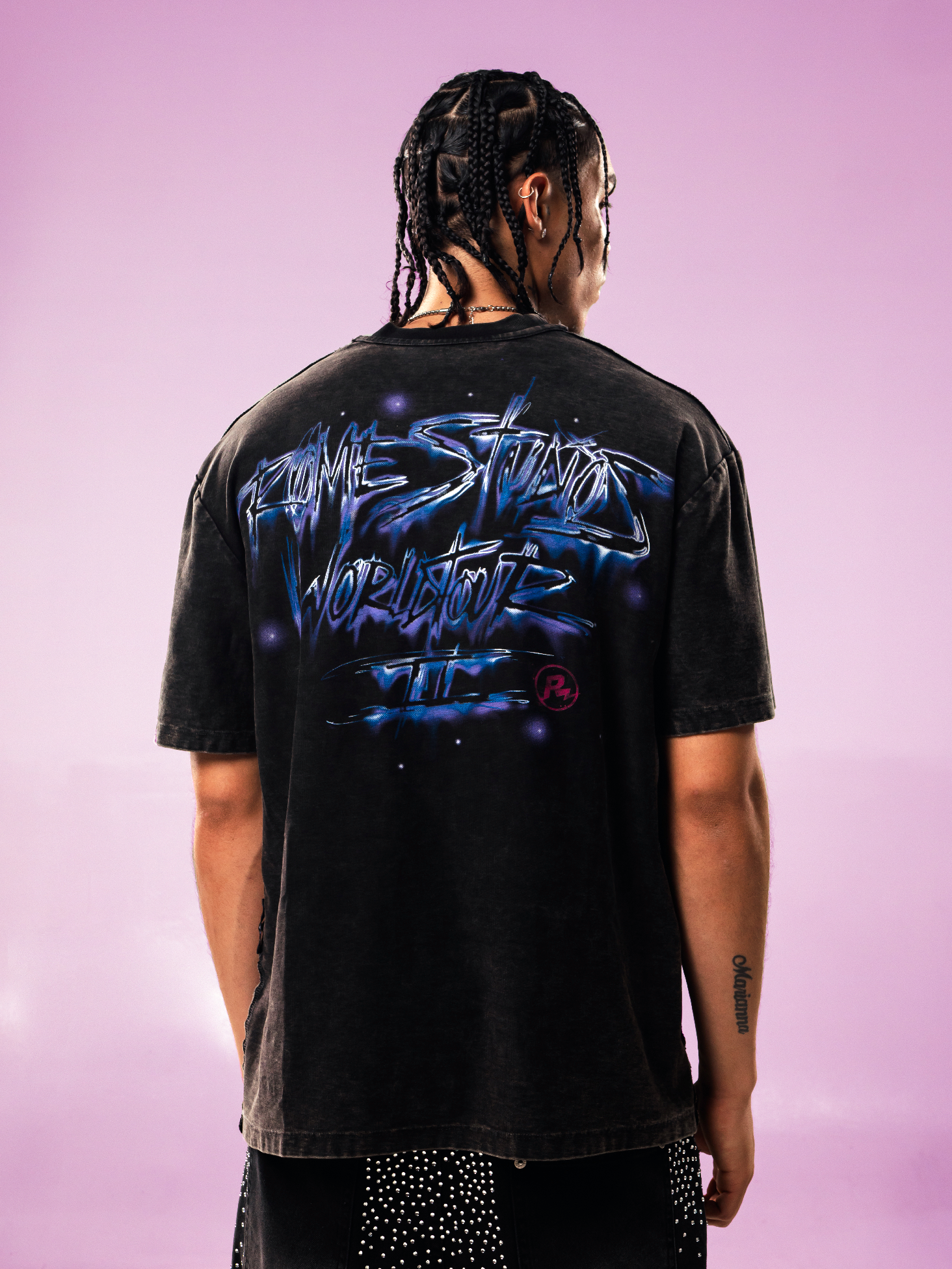 Polo en heavy cotton de corte relaxed, print en delantero y espalda. Diseño reversible y aplicación de metal.